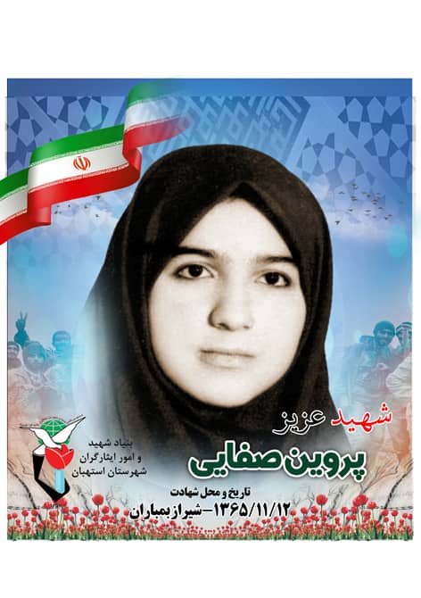 زندگی نامه شهیده پروین صفایی شهیده پروین صفایی در خانواده‌ای اصیل و مسلمان در تاریخ 28شهریور سال1350 در استهبان به دنیا آمد.او نخستین فرزند خانواده بود، پروین پس از گذراندن دوره ابتدایی عازم شیراز شد و در آن شهر در خانه و در جوار مادربزرگ خود زندگی تازه خود را آغاز کرد و در یکی از مدارس راهنمایی تحصیلاتش را ادامه داد و در خانه از محضر مادربزرگش آموزه‌هایی از دین را فرا گرفت.وی در زمان فراغت به مطالعه کتاب‌های شهیدمطهری و علی‌شریعتی مشغول می‌شد و گاهی به بافندگی مشغول می‌شد.شهیده صفایی از همان روزگار کودکی به به جا آوردن نماز در آغاز وقت شرعی علاقه فراوان داشت و به نظم و ترتیب اهمیت می‌داد و به نظافت و پاکیزگی و بهداشت فردی مقید بود و از دیگر خصلت‌های او قناعت بود و نیازمندی‌هایش از جمله پوشاک را محدود و با نازل‌ترین قیمت‌ها خریداری می‌کرد.شهادتزمانی که پروین در دبیرستان مشغول تحصیل بود، جنگ تحمیلی آغاز شد تا اینکه هواپیماهای دشمن حرمت حریم شیراز را شگستند و بمب‌ها بر فراز خانه مادربزرگش فرود آمدند و او به همراه دایی و زن‌دایی و مادربزرگش در تاریخ 12بهمن سال1365 در سن 15سالگی به شهادت رسید(:مزار این شهیدهٔ عزیز در گلزار شهدای استهبان قرار دارد.